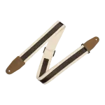2" Cotton Guitar Strap Dark Brown Leather Strip