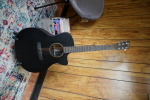The X Series is made to play. The acoustic-electric GPC-X1E Black is made up of high-pressure laminate (HPL) top, back, and sides in a striking satin black finish that doesn’t sacrifice that classic Martin sound. Playability enhancements include a thinner fingerboard with a gently beveled comfort edge and refined string spacing, and a modernized bridge contour for a smooth and comfortable playing experience, while its Grand Performance body size provides a projective, balanced tone with added bass, and a cutaway to help you reach the highest frets. The GPC-X1E Black also comes with satin tuners and Martin E-1 electronics, featuring a built-in chromatic tuner and volume, tone, and phase controls, letting you plug in and play at any volume. All X Series models come with a softshell case.